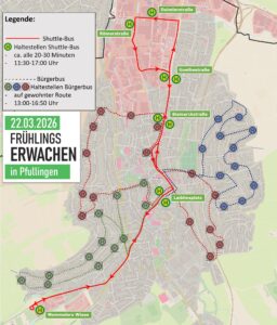 Als Highlight dürfen sich die Besucherinnen und Besucher wieder auf einen kostenlosen Shuttle-Bus im Stadtgebiet freuen, der von 11:30 bis 17:00 Uhr fährt. Auch wird der der kostenlose Service des Bürgerbusses wieder angeboten, der seine Fahrgäste auf den gewohnten Routen zwischen 13:00 und 16:50 Uhr aus den Wohngebieten in die Stadt bringt.